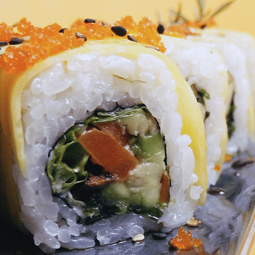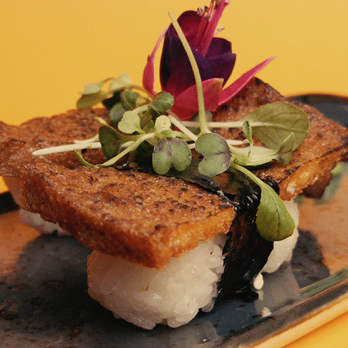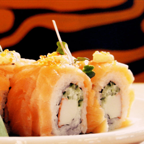 grubo krojona ryba z delikatnym sosem i chrupiącym listkiem nori